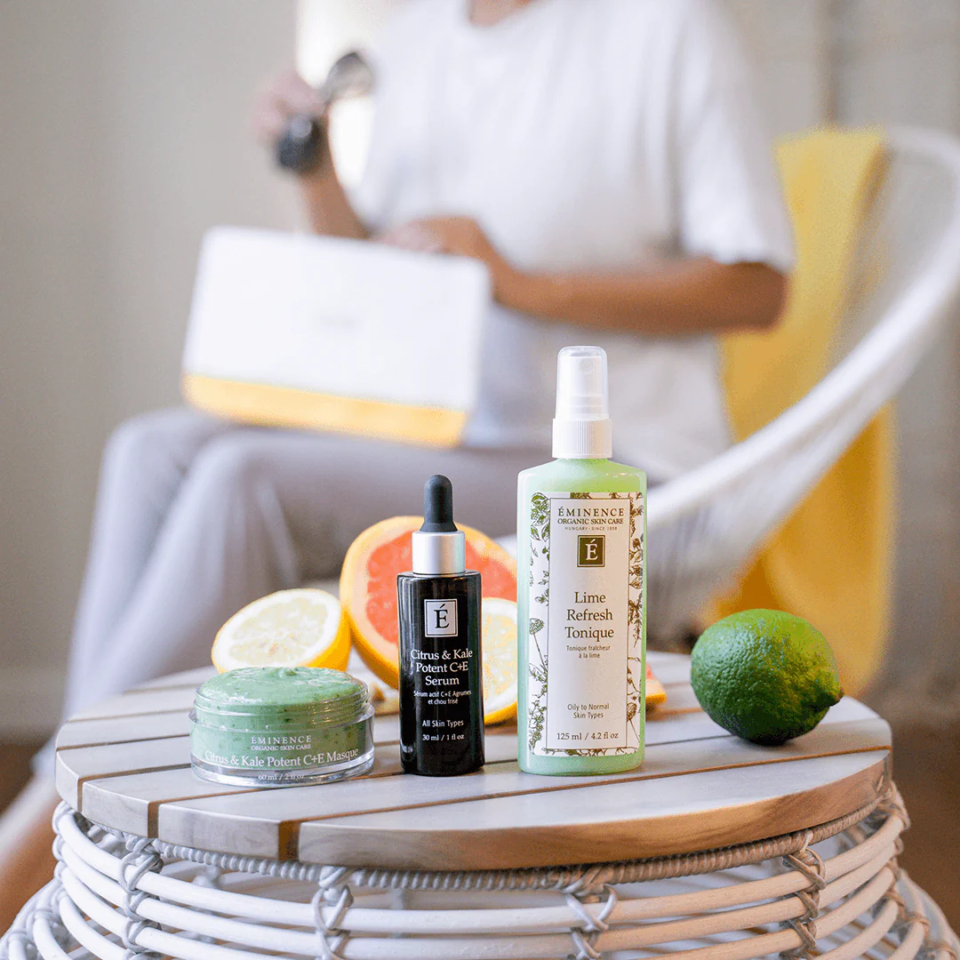 Eminence Organics Lime Refresh Tonique is formulated with fresh lemon and lime juices, as well as antiseptic lavender to help leave skin feeling balanced and fresh. Helps to reduce pore size and excess oil production and is ideal for toning the skin after cleansing or setting mineral makeup. The complexion takes on a bright, refreshed radiance and a supple, healthy texture.