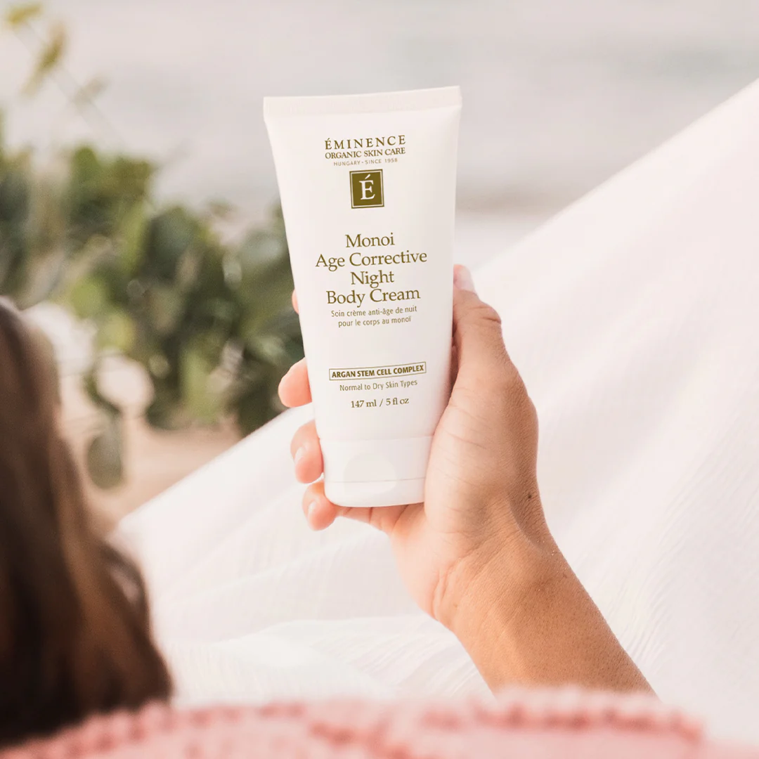 Eminence Organics Monoi Age Corrective Night Body Cream is an ultra-rich night body cream with an exclusive Anti-Aging Stem Cell Complex and plant-derived Hyaluronic Acid. Skin appears denser, firmer and smoother from head to toe. Argan oil, Evening Primrose and Grape seed oils nourish the skin and encourage a luxurious slumber.