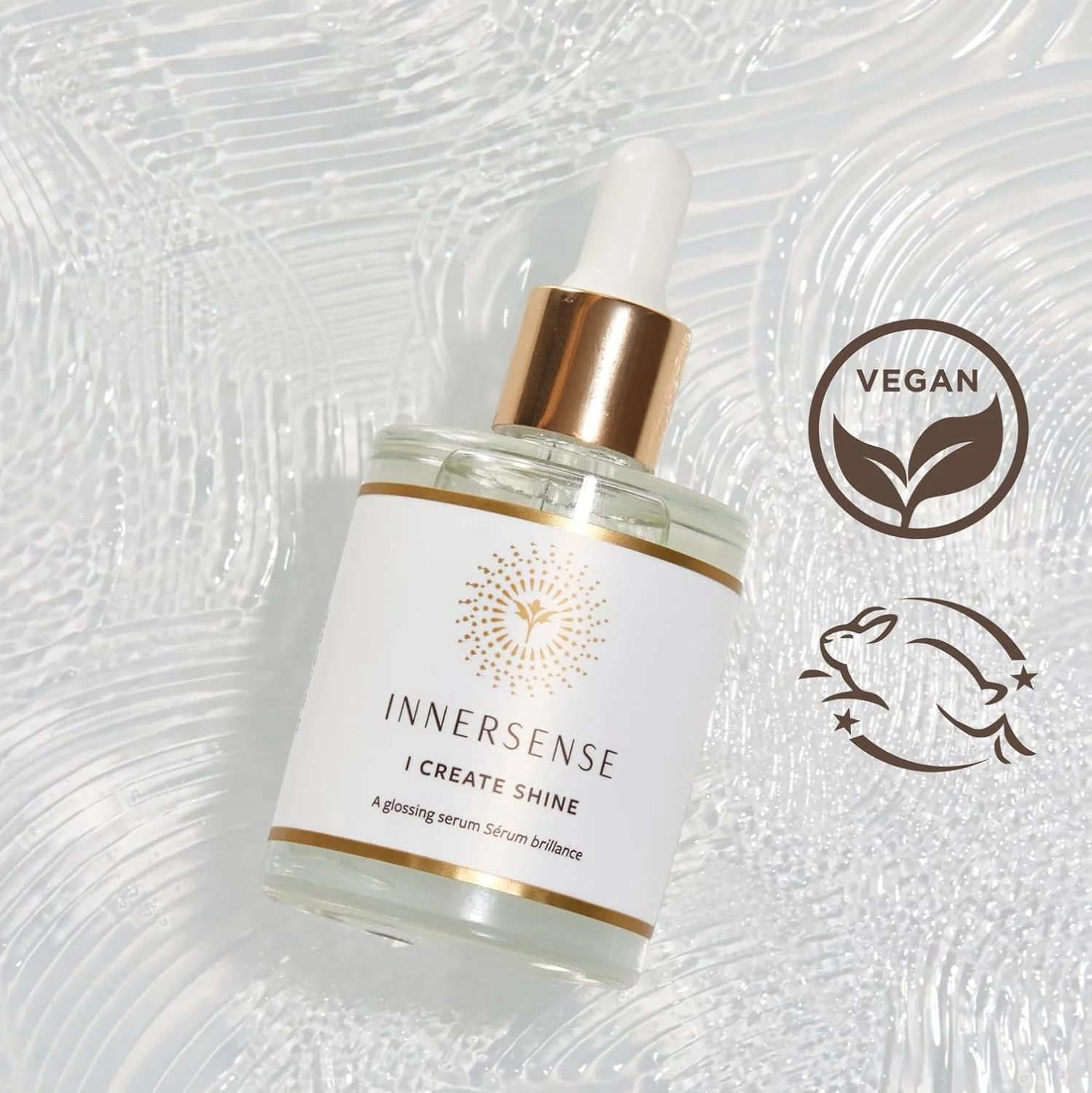 INNERSENSE Organic Beauty I Create Shine is a radiance-enhancing serum designed to bring out your hair's glossiest, healthiest look. This silicone-free formula blends lightweight oils, including Sesame, Macadamia, and Cranberry Seed, to deliver mirror-like shine, protect from environmental damage, and boost hydration. Infused with the uplifting scent of lotus flower, it leaves hair smelling fresh and vibrant. Add a touch of liquid sunshine to your hair for a beautifully polished, luminous finish.